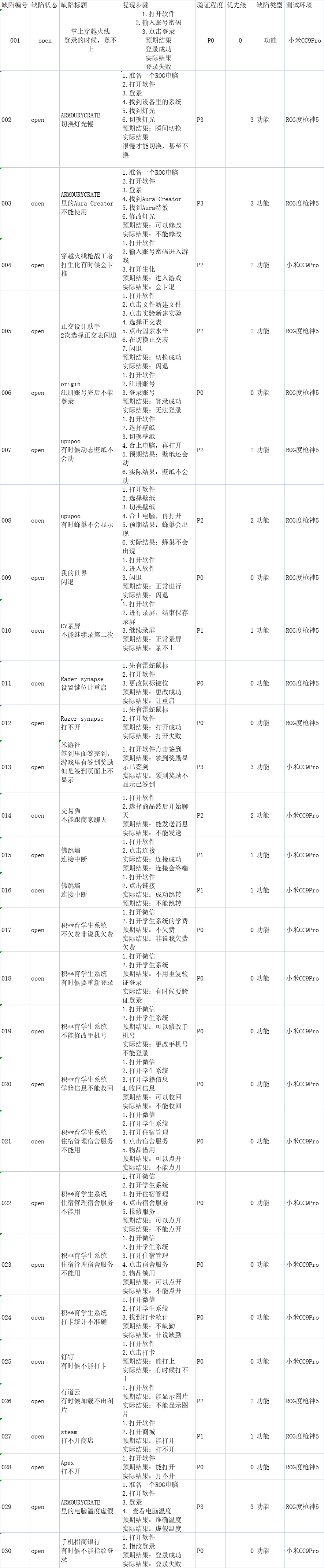 很多软件的BUG