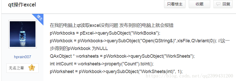 其一:mpWorkbooks->dynamicCall("Open(const QString&)", QVariant(msXlsFile))