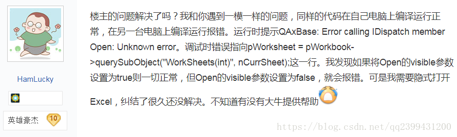 在接近崩溃边缘,在百度里“QAxBase: Error calling IDispatch member Open: Unknown error”查了这么句提示。在以前不屑一顾的贴吧里面找到了答案!