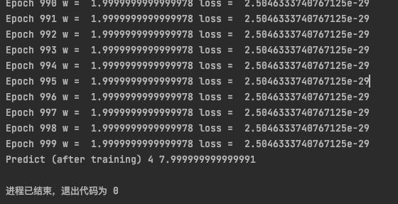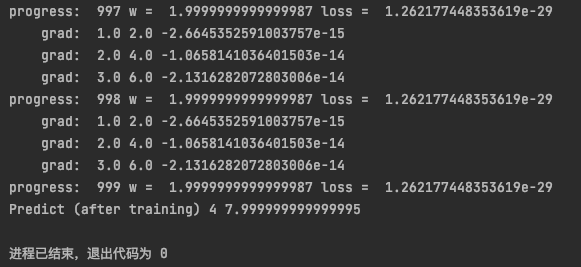 print('progress: ', epoch, 'w = ', w, 'loss = ', los)
