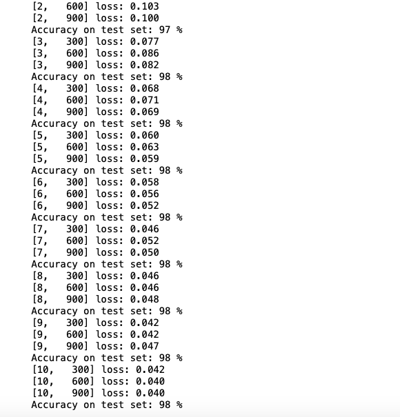 print(f'[{i * len(inputs)}/{len(trainset)}]', end = '')