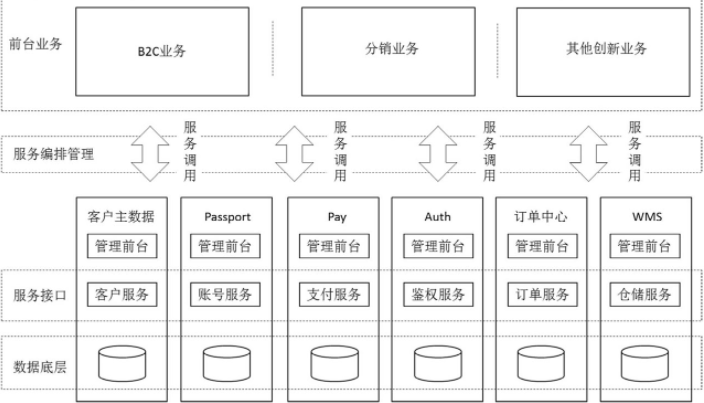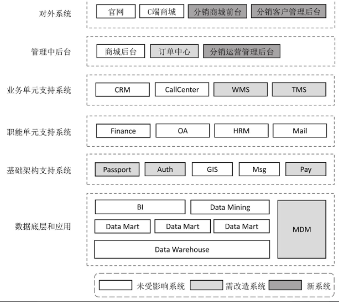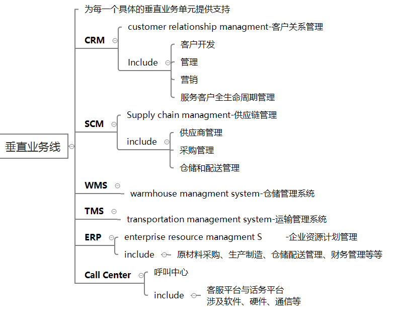 例如,客服业务要用到Call Center系统,用户账号体系管理要用到Passport系统,仓储业务要用到WMS,配送业务要用到TMS。