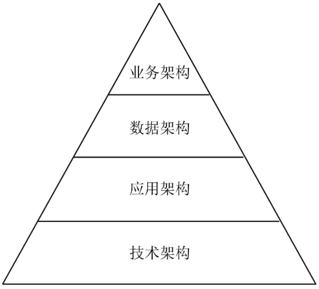 在EA模型中,企业架构分为四个主题,分别为业务架构、数据架构、应用架构、技术架构
