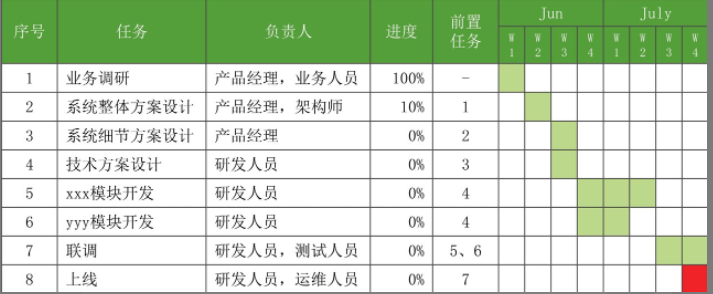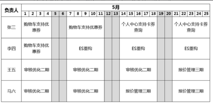 如果有这样一张图来清楚地呈现研发人员的工作安排,就可以避免这些争执。因此,维护好这张研发人力资源安排图,也是对研发人员的一种保护,避免他们“蒙受”工作不饱和的怀疑和指责。