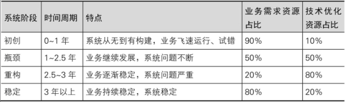 对于瓶颈阶段和重构阶段分别持续多久、在什么时候发生,这个问题很难准确回答,取决于业务情况、系统状况、技术团队的话语权等因素。