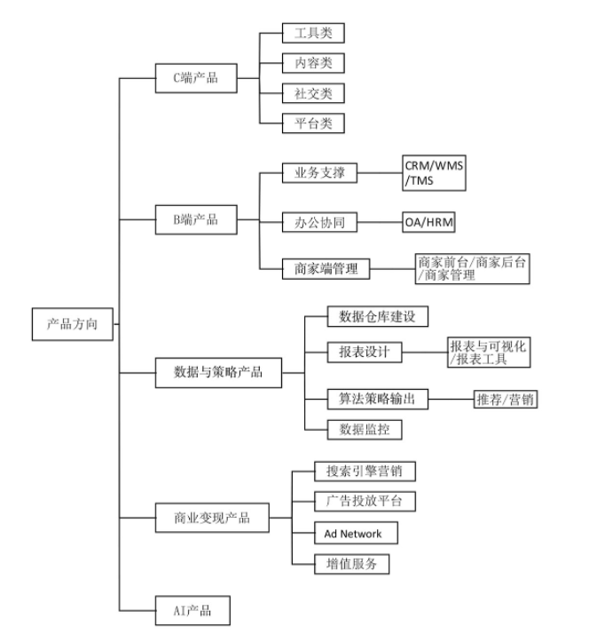 根据服务对象,B端产品方向: