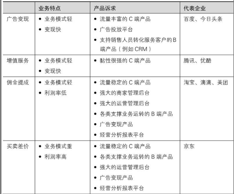 不同盈利模式对不同产品方向的诉求: