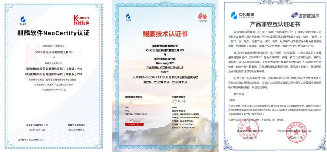 近日,ONES 顺利通过麒麟软件 NeoCertify、华为鲲鹏技术、达梦数据库的兼容性测试认证,至此,ONES 已完成国产操作系统、国产 CPU、国产数据库的多维度适配,成为目前唯一支持信创的研发管理平台,这标志着 ONES 在自主可控的道路上迈上新台阶。