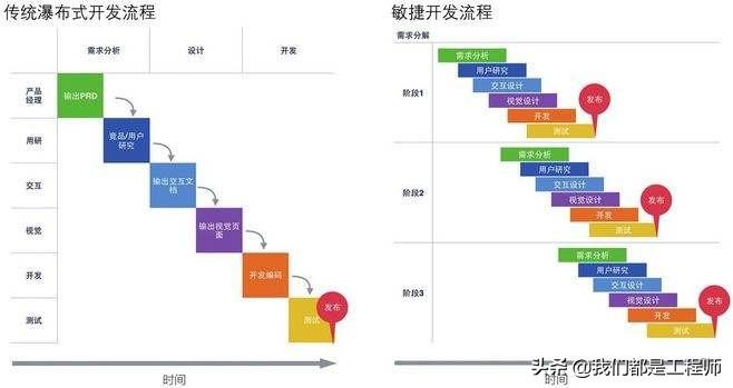 3、一般项目就是按照需求分析、开发、测试、交付的软件项目自然过程来进行,这也就是我们说的瀑布模式,但是有的项目并不完全按照这种方式进行,而是采取快速迭代的方式,即采用我们经常提到的敏捷开发来达到快速迭代,这种项目一般都是产品型项目,目的是加快产品的更新速度,缩短产品的开发周期。