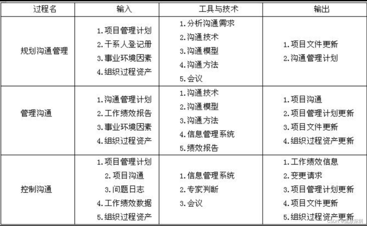 项目沟通管理过程的输入、工具与技术和输入,如表所示: