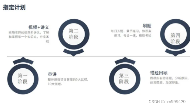 PMP的考试不是中国的传统考试,不是应试的,所以要通过及时做题来看自己知识点的掌握,错误的题目立马去看讲义或者视频,再复习巩固一遍。