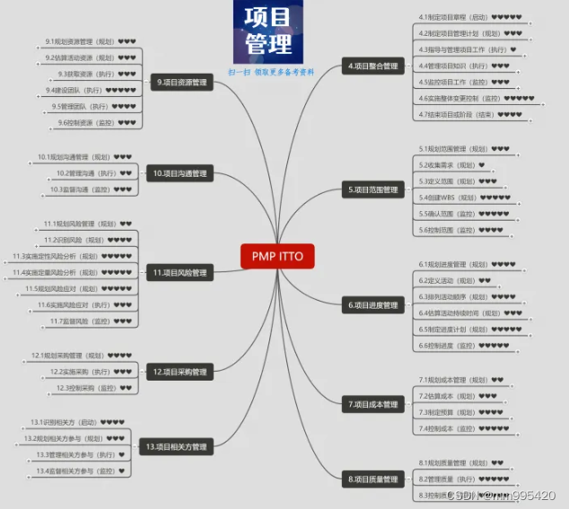 首先我们要读一遍官方指定教材《PMBOK》,这本书真的很厚,所以进行一个泛读,梳理出PMP知识框架,可以利用思维导图的方式,对PMP知识点进行梳理,在脑海中对知识总体布局有了解即可。