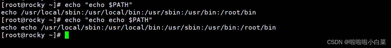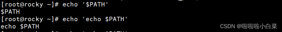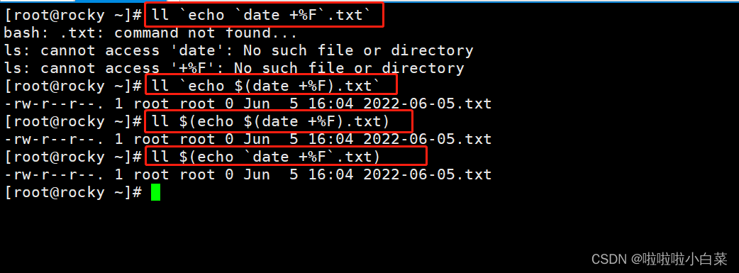 - 反引号里面的内容必须要是能执行的命令并且有输出信息,变量和命令都识别,并且会将反向单引号的内容当作命令执行后,再交给调用反向单引号命令继续。