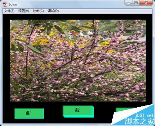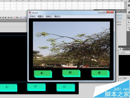 16、选择第一“按钮”元件打开其动作面板输入代码,同样道理分别选择第二第三个“按钮”输入代码。