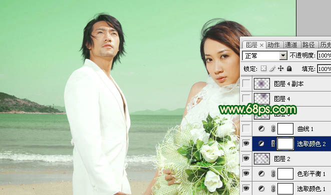 以上就是疯狂音响最近收集整理的关于Photoshop将海景婚片调成甜美的青绿色图片调色效果的全部内容,更多相关Photoshop将海景婚片调成甜美内容请搜索靠谱客的其他文章。