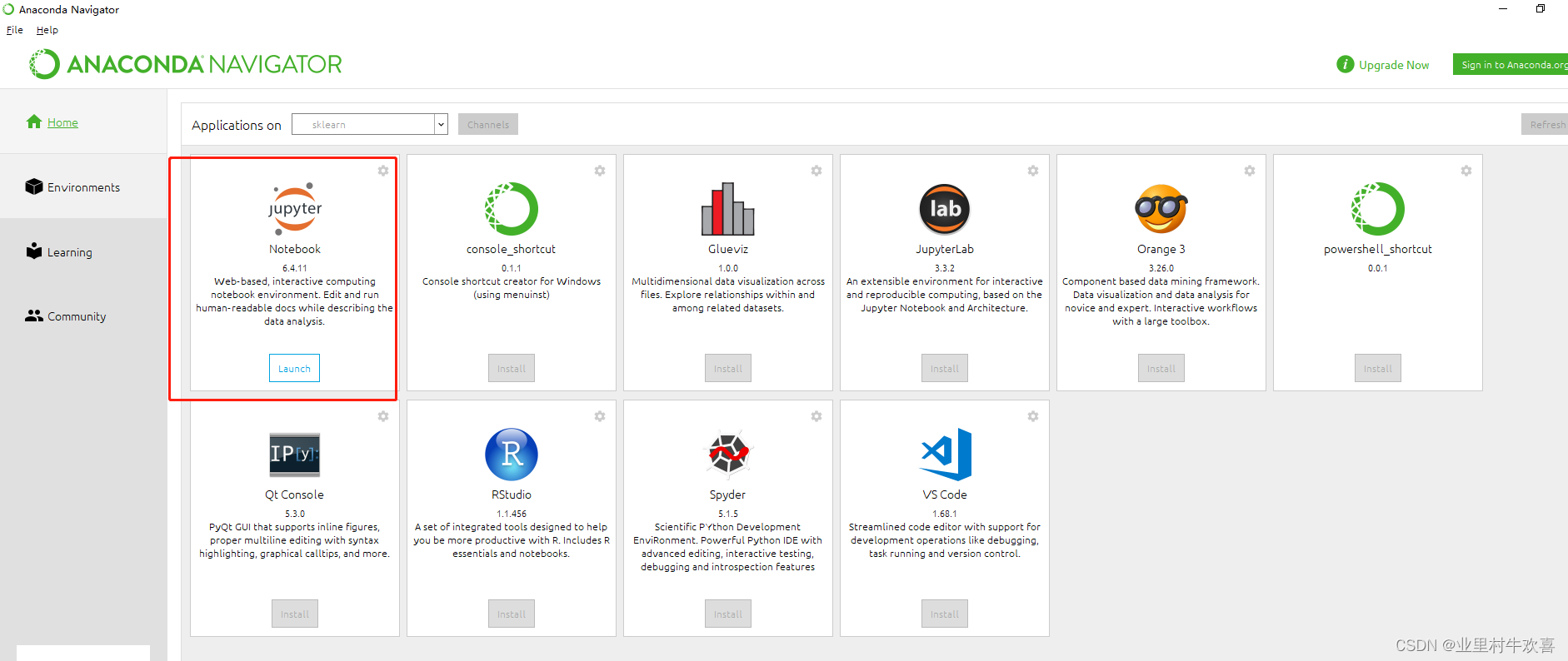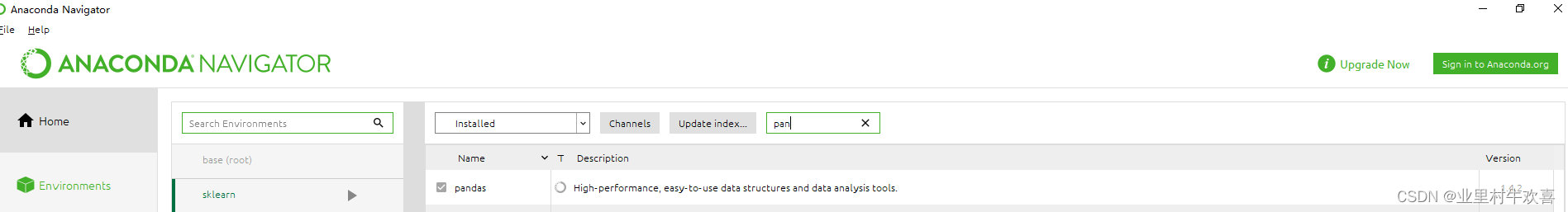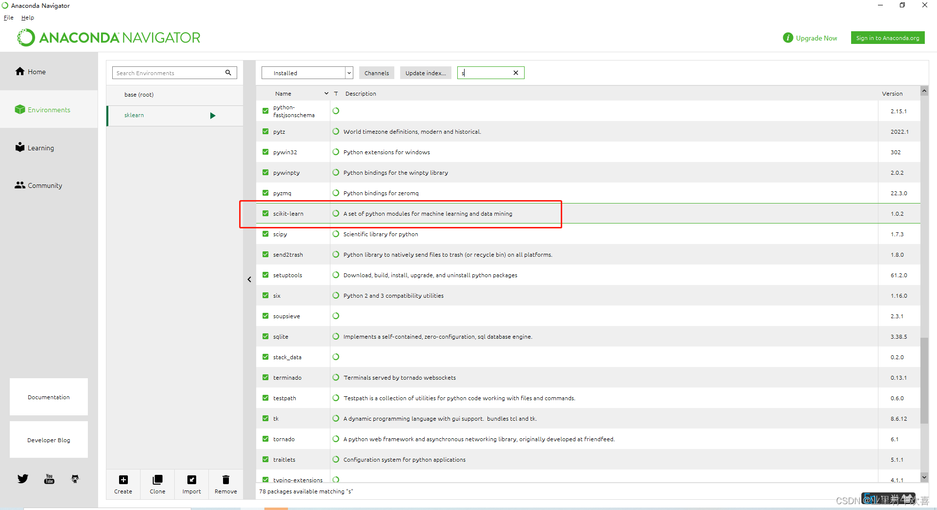 scikit-learn、pandas、numpy模块包可以在Anaconda界面安装或者用指令安装都可以。