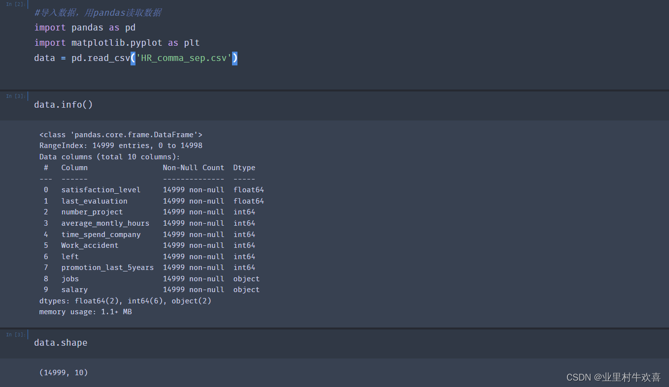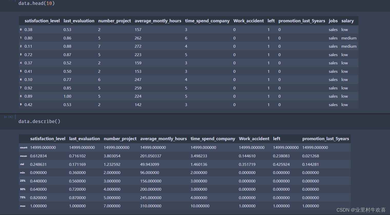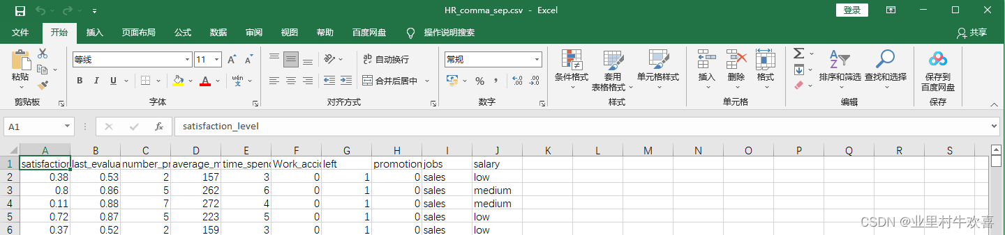 换一组数据进行深度学习演示,先看训练的数据HR_comma_sep.csv表