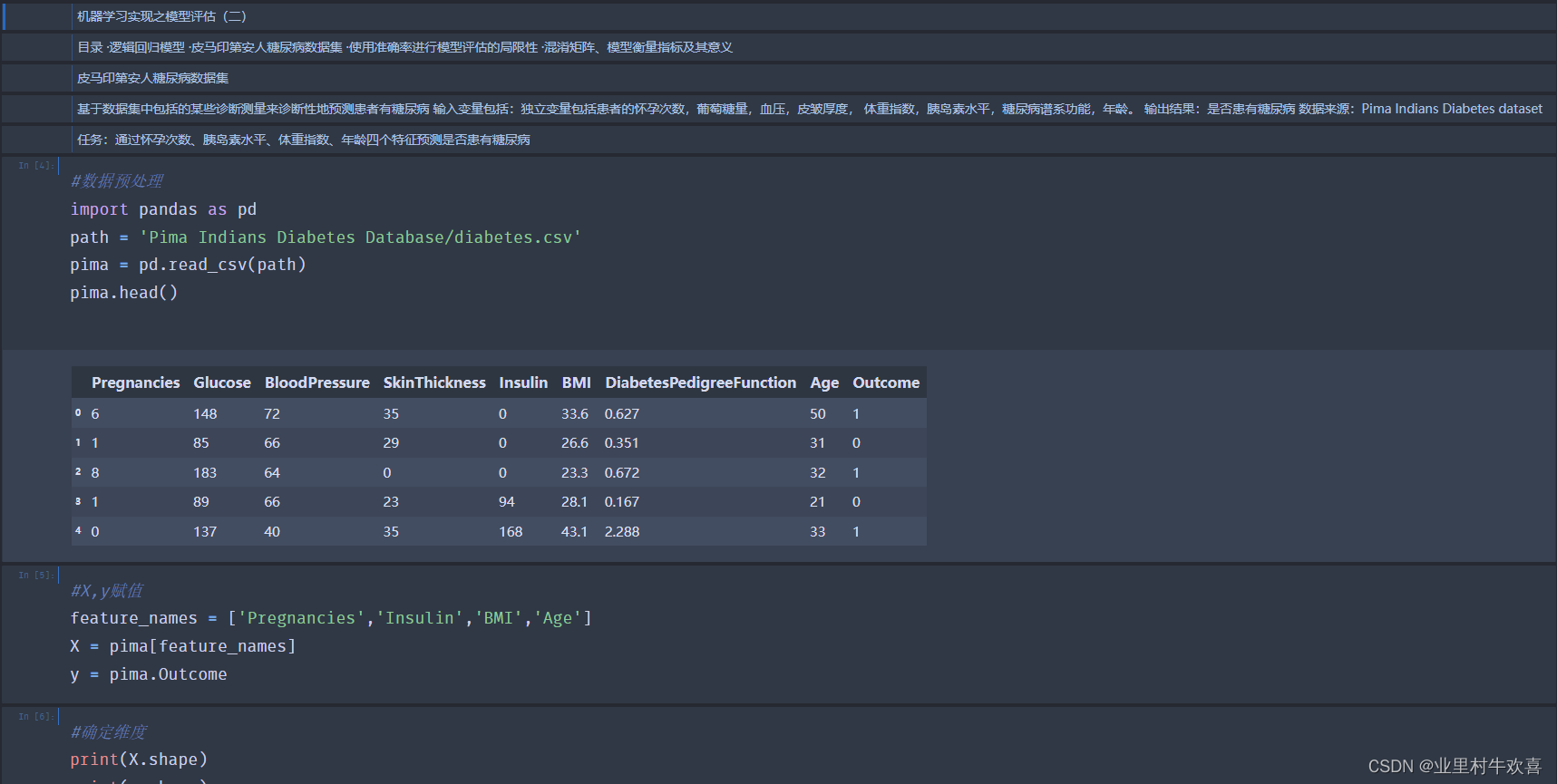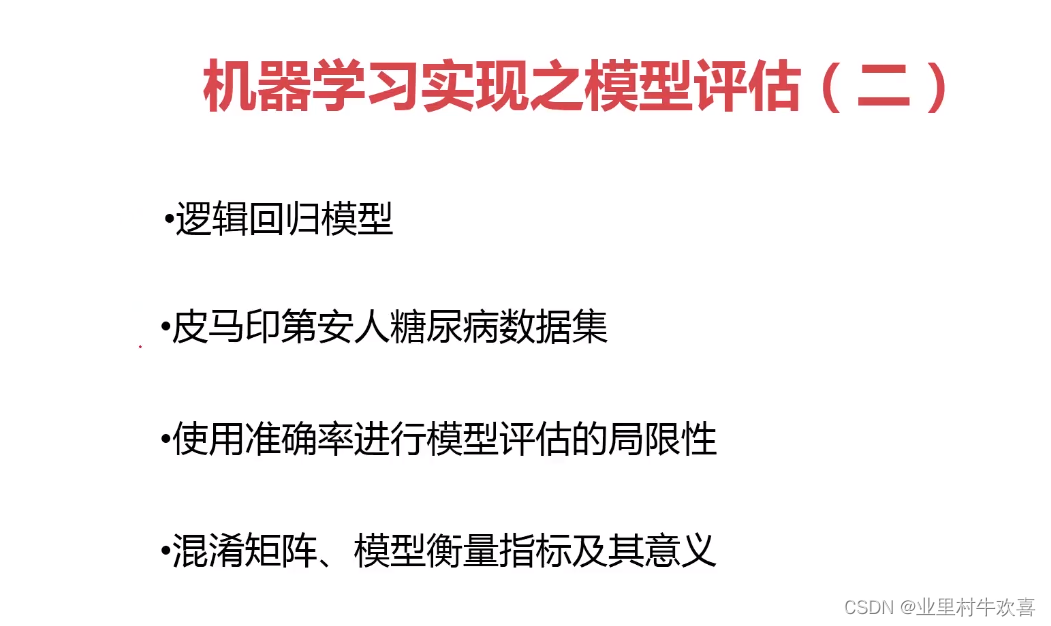 目录 ·逻辑回归模型 ·皮马印第安人糖尿病数据集 ·使用准确率进行模型评估的局限性 ·混淆矩阵、模型衡量指标及其意义