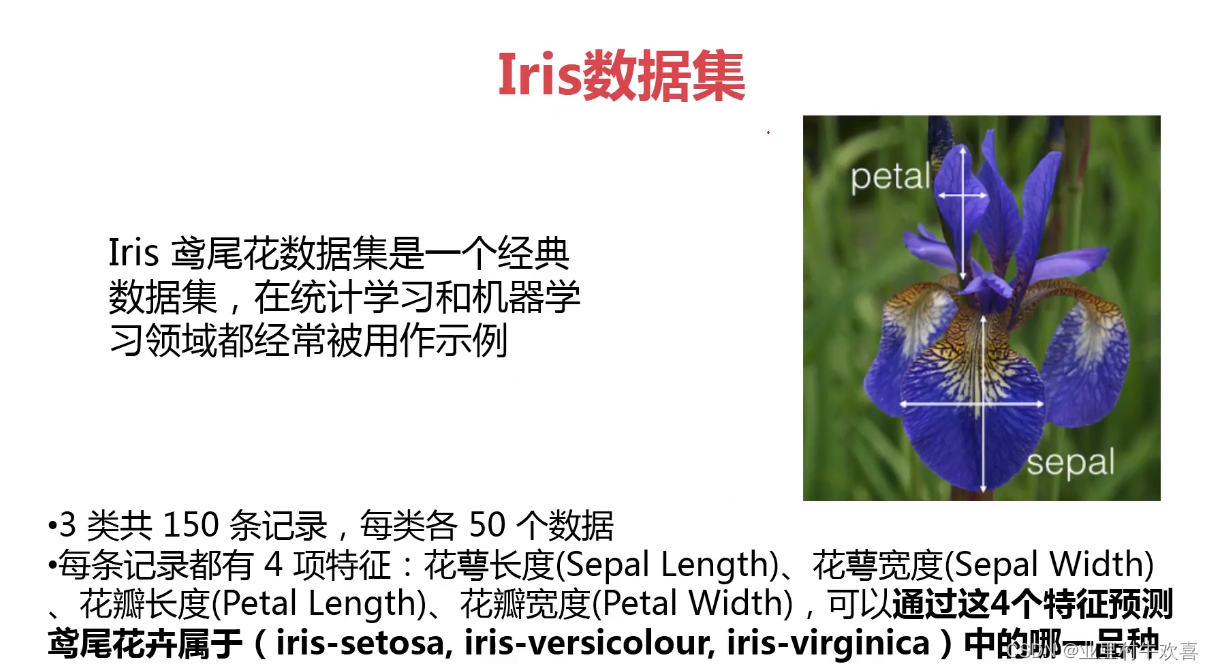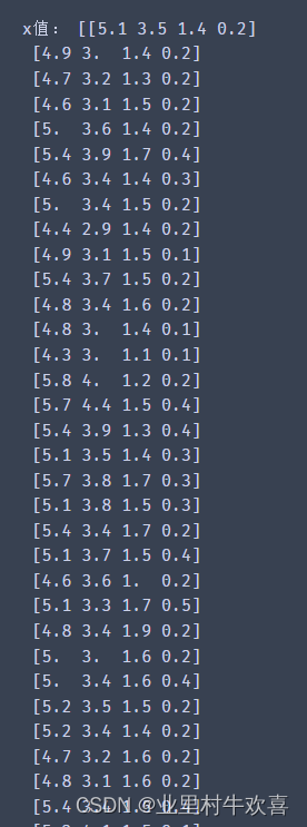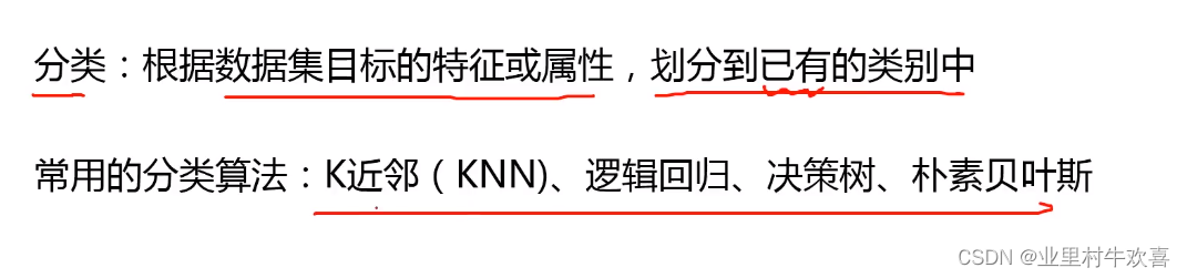 -分类问题是对应结果为类别(非连续性)的监督式学习问题 -每个预测的数值即是结果数据(或称为:目标、输出、标签) 使用scikit-learn进行数据处理的四个关键点 1、区分属性数据与结果数据 2、属性数据与结果数据是可量化的 3、运算过程中,属性数据与结果数据的类型都是numpy数组 4、属性数据和结果数据的维度是相同的。