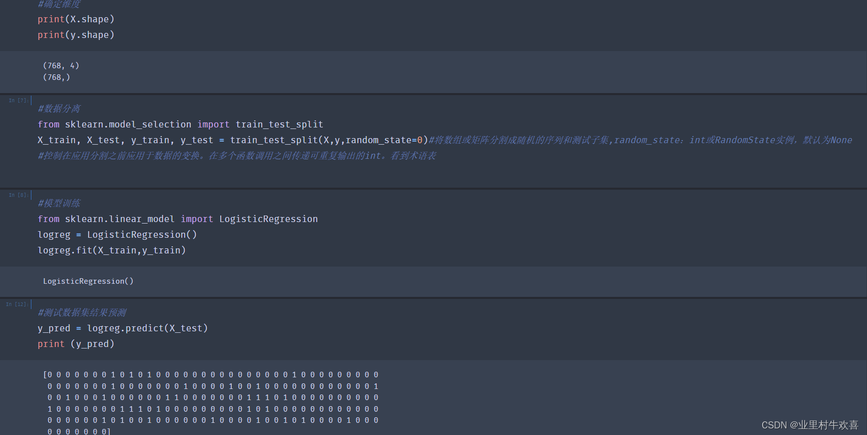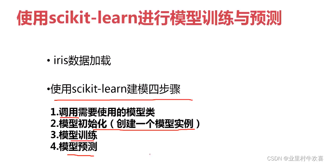 1、调用需要使用的模型类 2、模型初始化(创建一个模型实例) 3、模型训练 4、模型预测