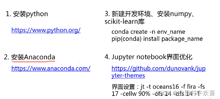 python语言、scikit-learn 模块、Anaconda、jupyter nootbook、panda模块 numpy模块、机器学习环境的部署