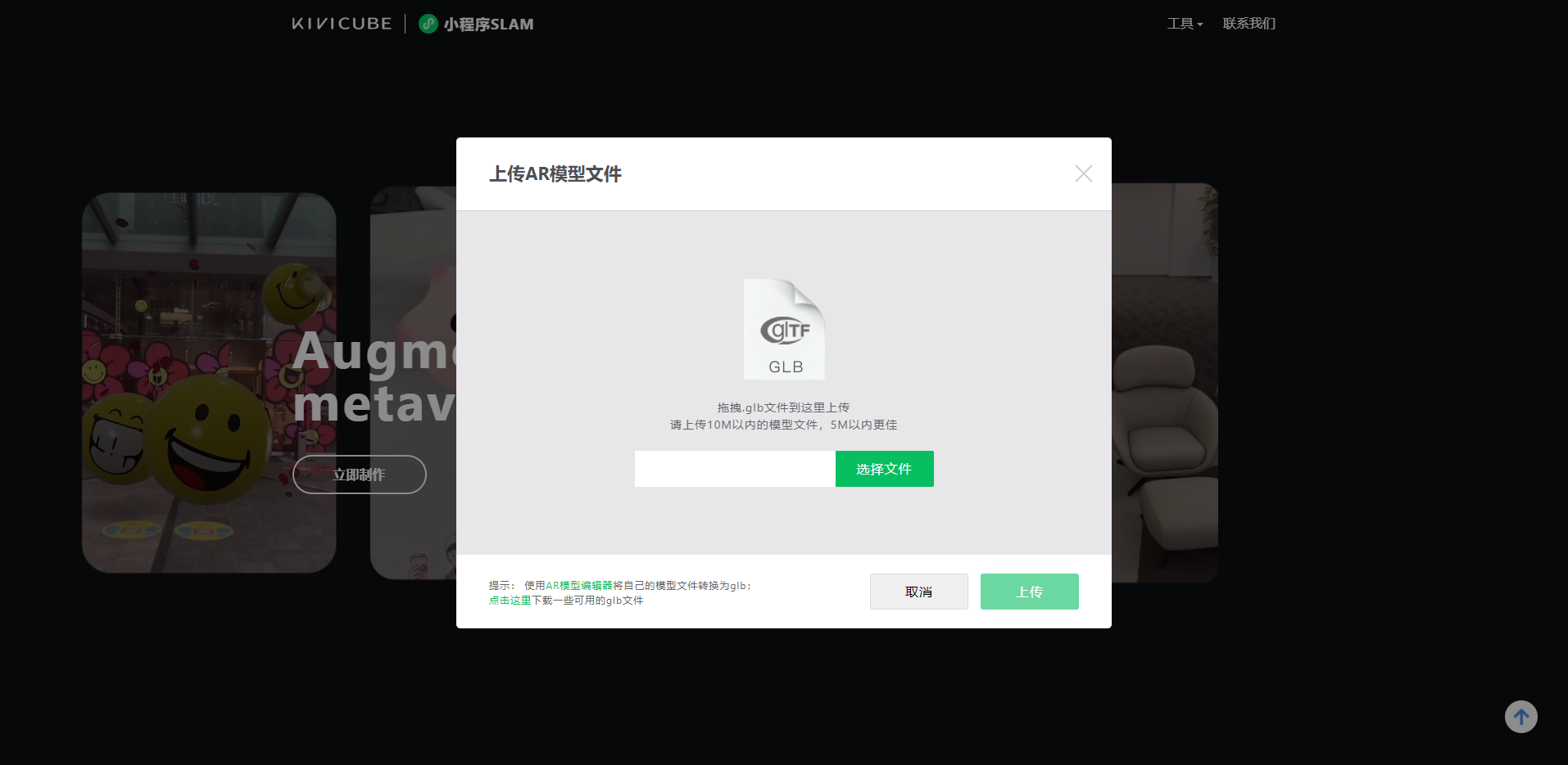上传GLB文件(glb的文件底下有找寻方法。)