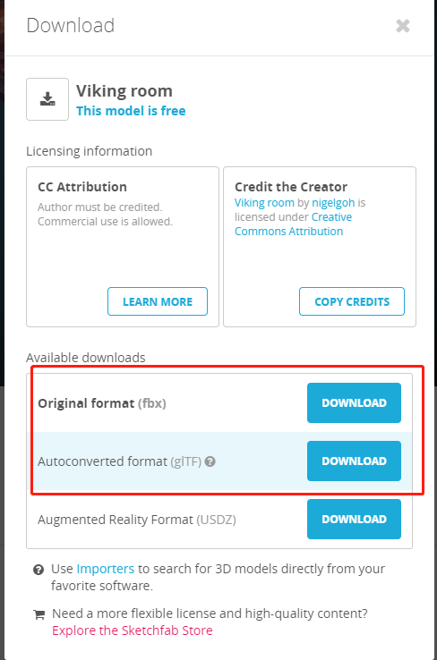这里可以选择fbx,gltf模式的下载包(gltf最近下载下来都是bin文件,不知道为什么,有知道人告诉我一下。)