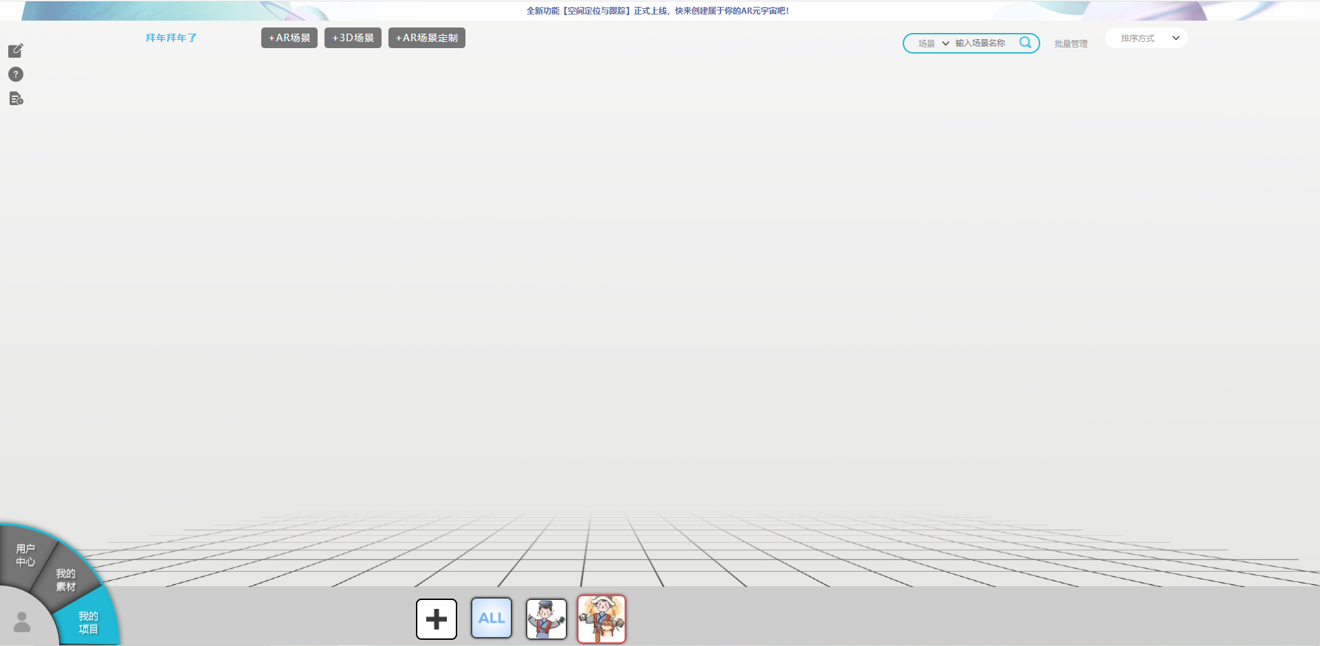 在个人中间里面点击+AR场景,进行创建。