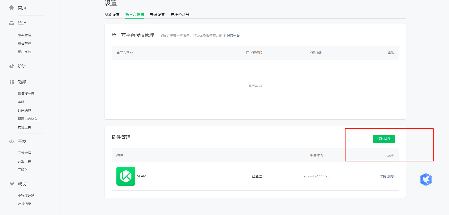 第二步将SLAM第三方插件关联到小程序中。