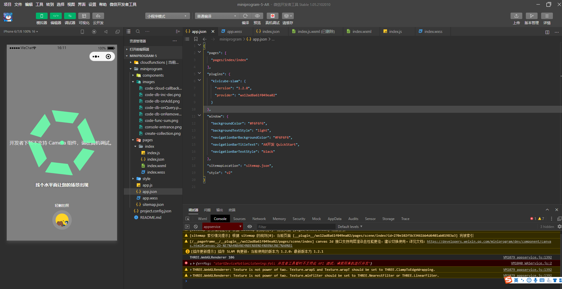 调试结果呈现:微信开发工具不支持3D画面调试,建议在真机上面调试。