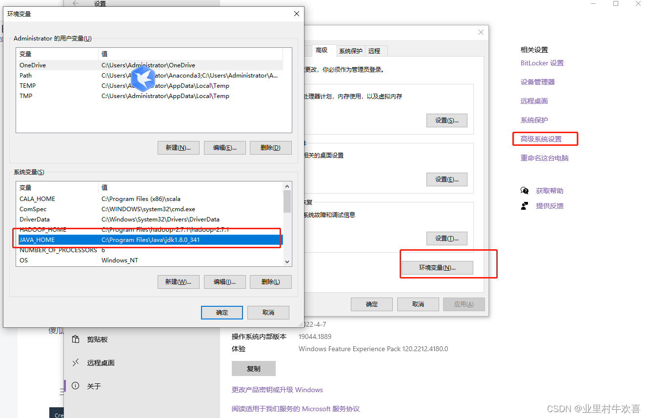 Windowns10,Anaconda3(自带python3.7,R语言),jdk-8u341-windows-x64、scala-2.12.8.msi、pyspark3.1.2