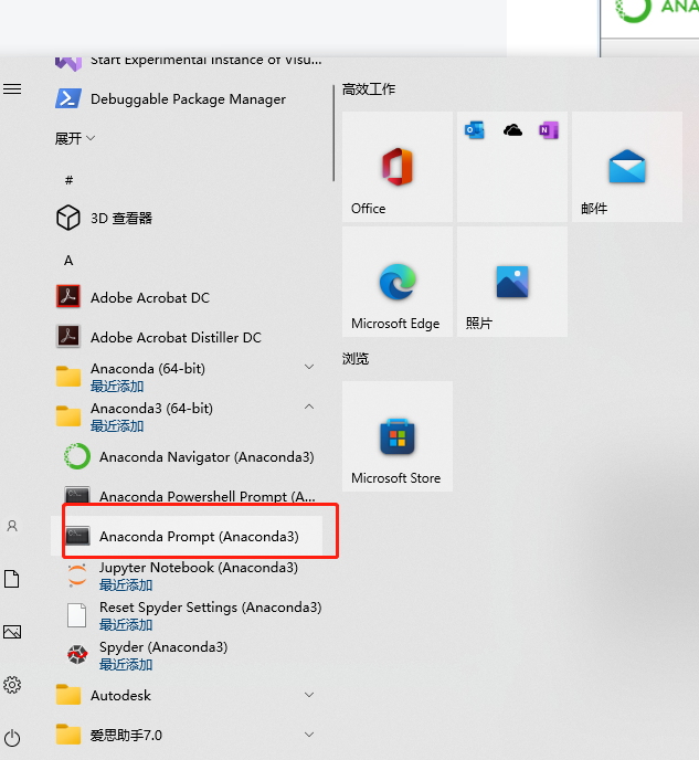 正常安装完Anaconda程序后,选择Anaconda Prompt进行命令行运行,Anaconda的操作命令行。直接网友搜索链接可以找寻到相关指令,师傅领进门修行在自身了。