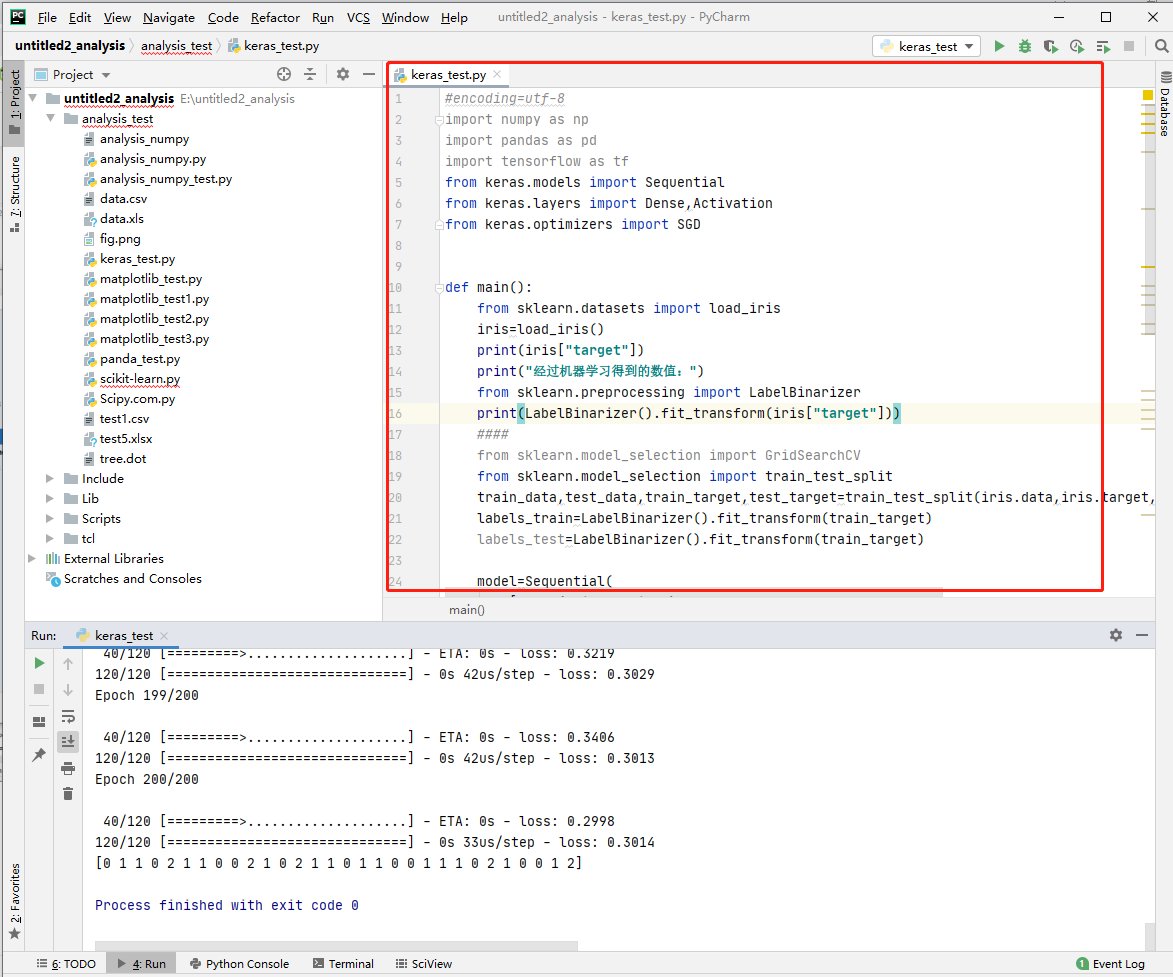 model.fit(train_data,labels_train,np_epoch=200,batch_size=40)更换为:model.fit(train_data,labels_train,epochs=200,batch_size=40)