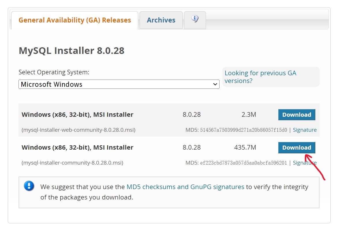 MySQL 社区版安装地址 MySQL :: Download MySQL Installer