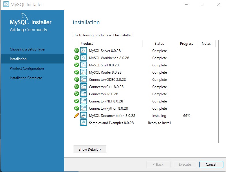 到这一步,点击execute执行安装,过程可能要耗时几分钟时间,安装完成后点击next