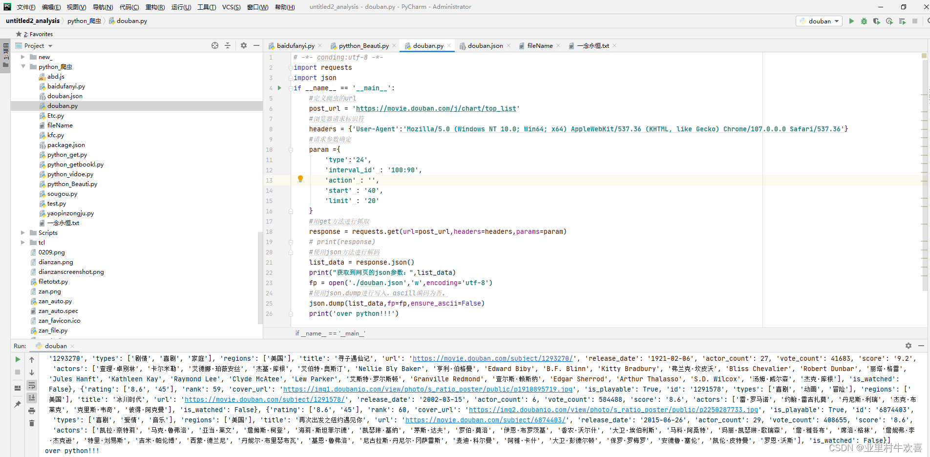 使用GET方法抓取豆瓣电影的数据,获取有用的数据,将数据本地化存储。