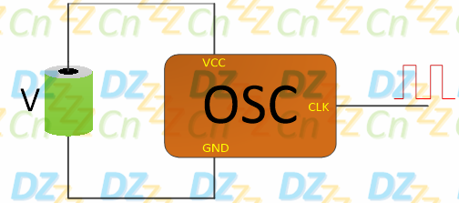 如下图所示的有源晶振,在外部施加适当的电压后,就可以输出预先设置好的周期性时钟信号,