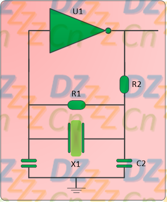 R1是反馈电阻(一般≥1MΩ),它使反相器在振荡初始时处于线性工作区,R2与匹配电容组成网络,提供180度相移,同时起到限制振荡幅度,防止反向器输出对晶振过驱动将其损坏。