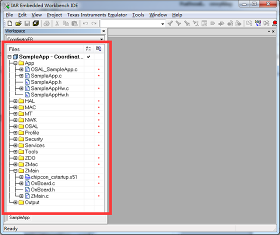 打开工程后,可以看到SampleApp工程的文件布局,工程界面中,左侧有很多文件夹,如App、 HAL、 MAC等,这些文件夹对应了ZigBee协议中不同的层,可以看到,在每个层中都有着大量的文件,不过在学习过程中也不用担心,简单来说,可以把Z-stack协议栈理解为一个小型的操作系统,而这个系统采用任务轮询机制进行工作。如图: