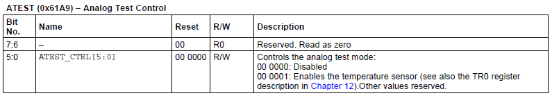 1 TR0 |= 0x01; 2 ATEST |= 0x01;
