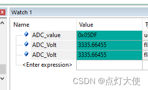 在debug模式下 可以在watch窗口中看见相关值 单位为mv