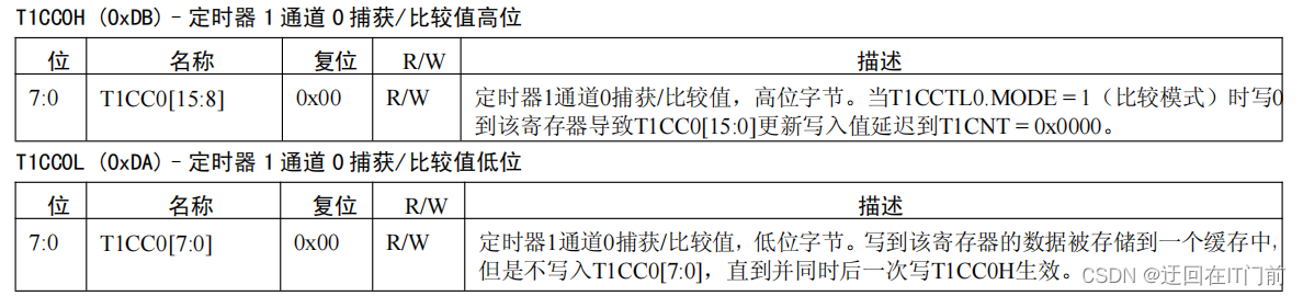 T1CC0H和T1CC0L寄存器: