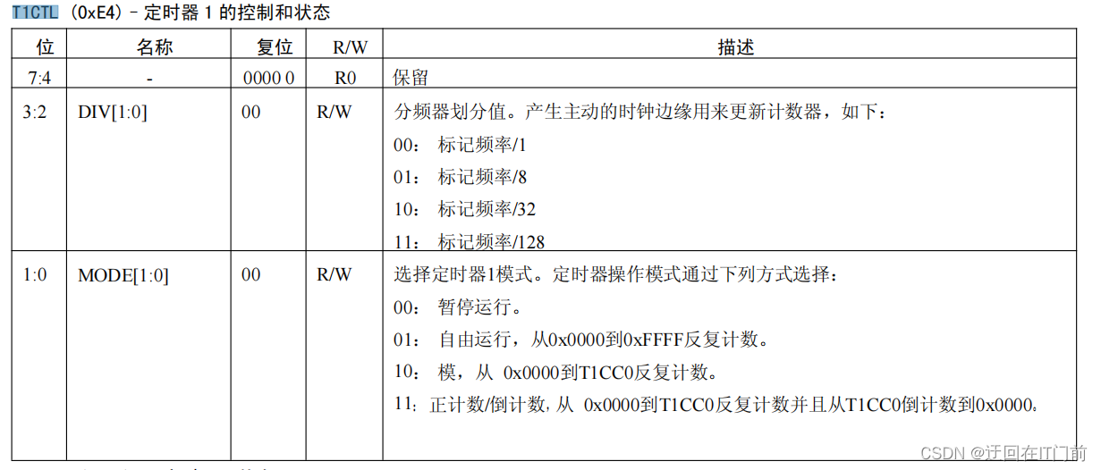 T1CTL = 0x0e; //128分频,模模式