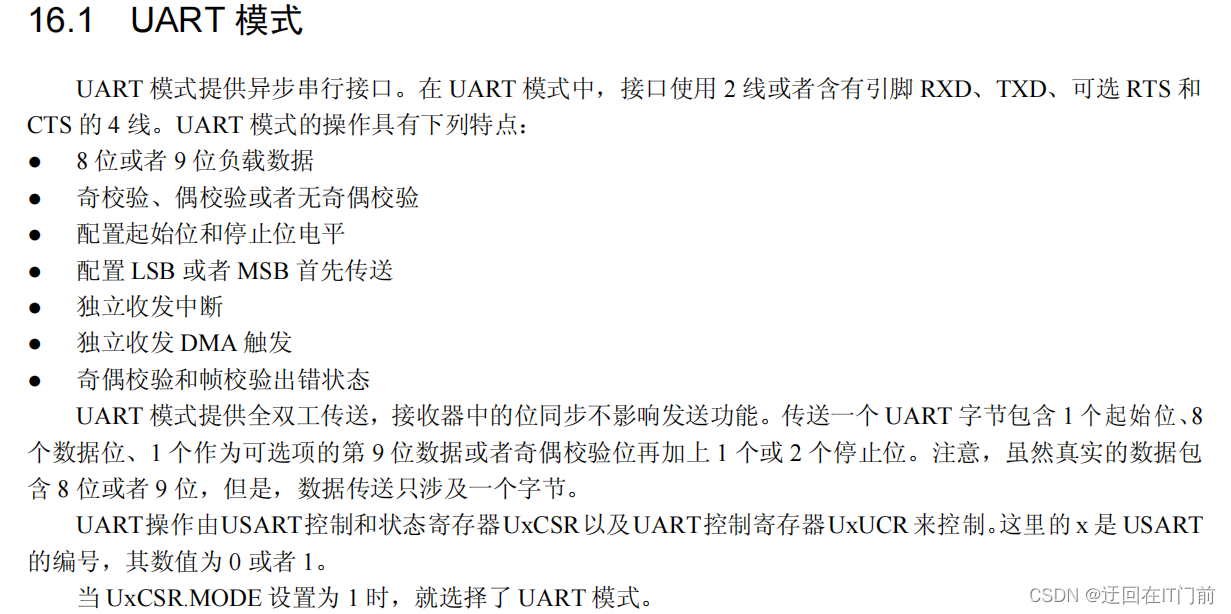 U0CSR |= 0x01<<7|0x01<<6; //设置为UART模式,UART接收器使能