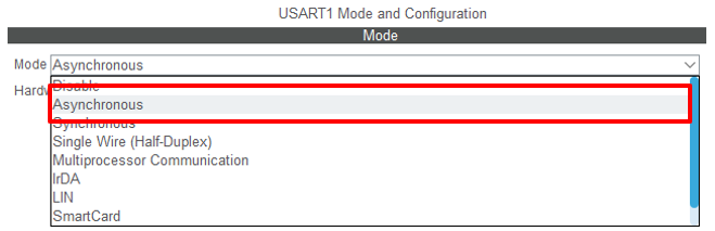 - 3. 打开USART1,并设置模式为异步收发模式Asynchronous: