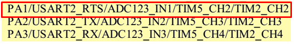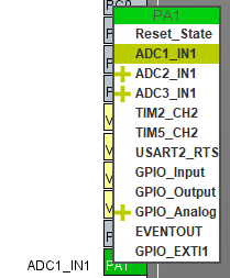 根据原理图可知ADC1的通道1的引脚为PA1,因此设置PA1为ADC1_IN1模式。