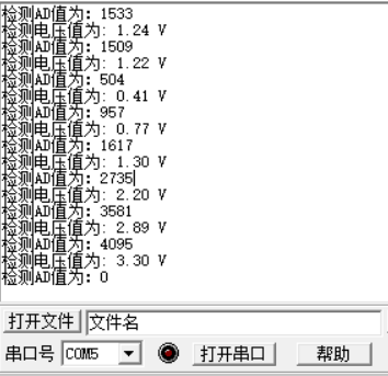 ⑤将AD值转换为电压值存在VOL_Value中并打印。