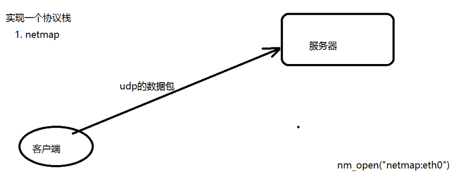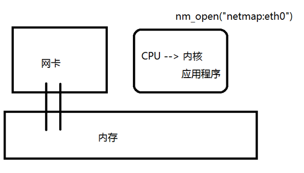 struct nm_desc *nmr = nm_open("netmap:eth0", NULL, 0, NULL);//将网卡的数据映射到内存中,不会再走内核协议栈,etch0被netmap接管