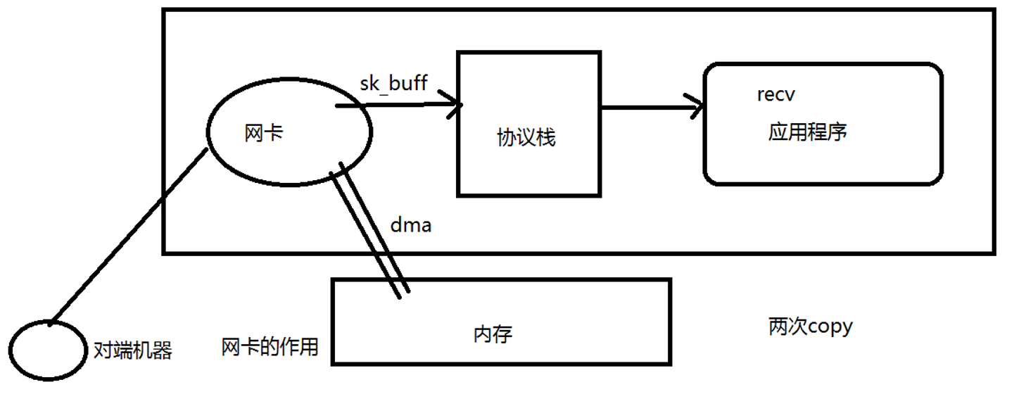 两次拷贝:网卡copy到协议栈 协议栈copy到应用程序