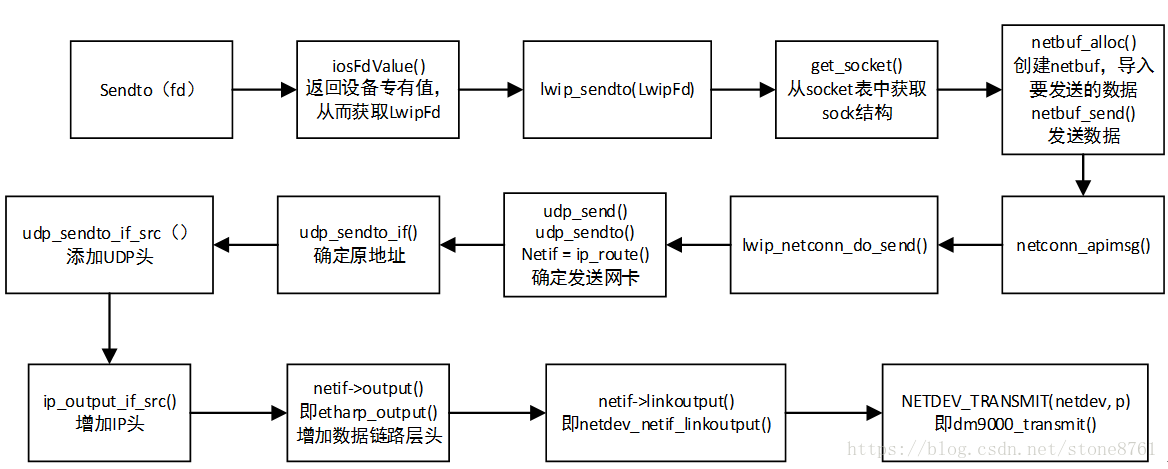 3) Netbuf结构最终会传入udp_send()或udp_sendto(),这其中会通过ip_route()确定最终需要发送的网卡结构netif;